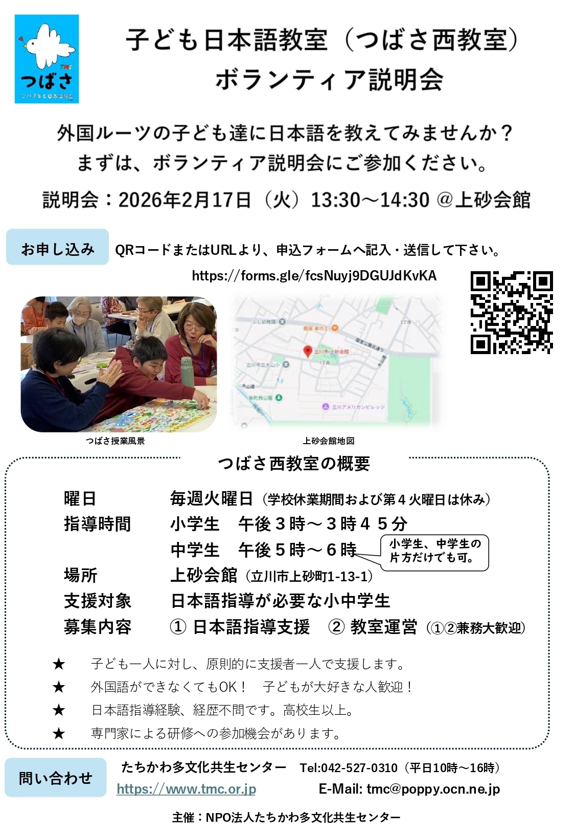 問い合わせ先:立川子ども日本語教室 akiko-shirai@tachikawa-mc.org