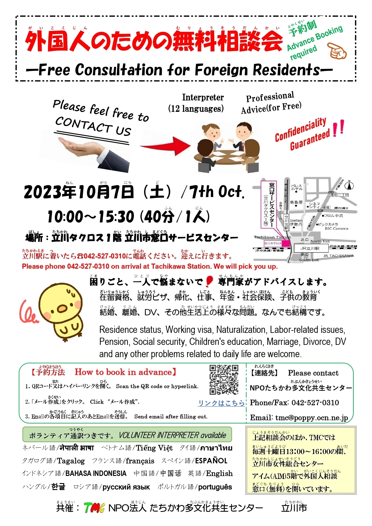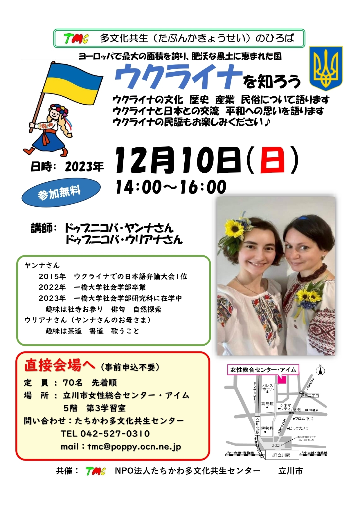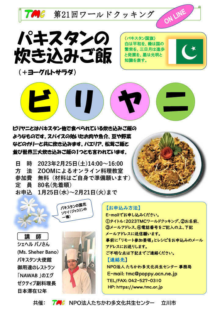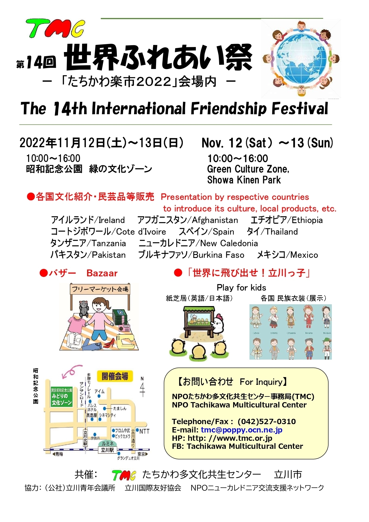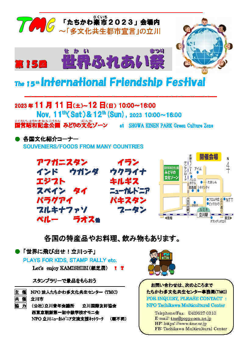 お申込み、問い合わせ先:NPO法人たちかわ多文化共生センター(TMC)