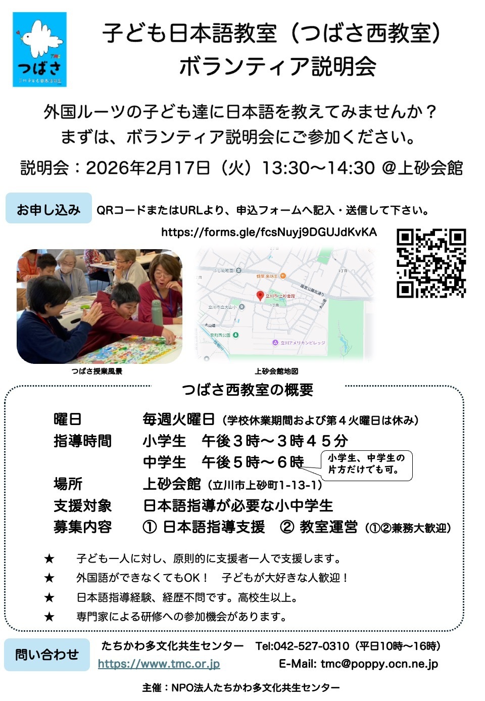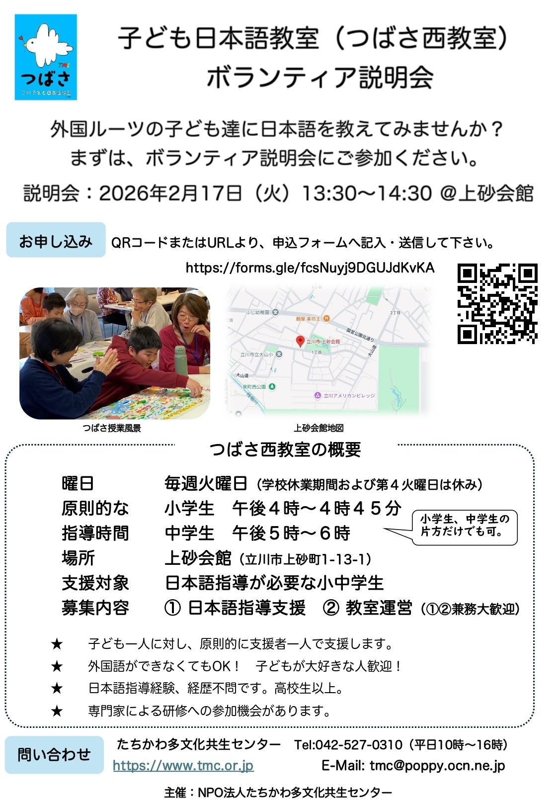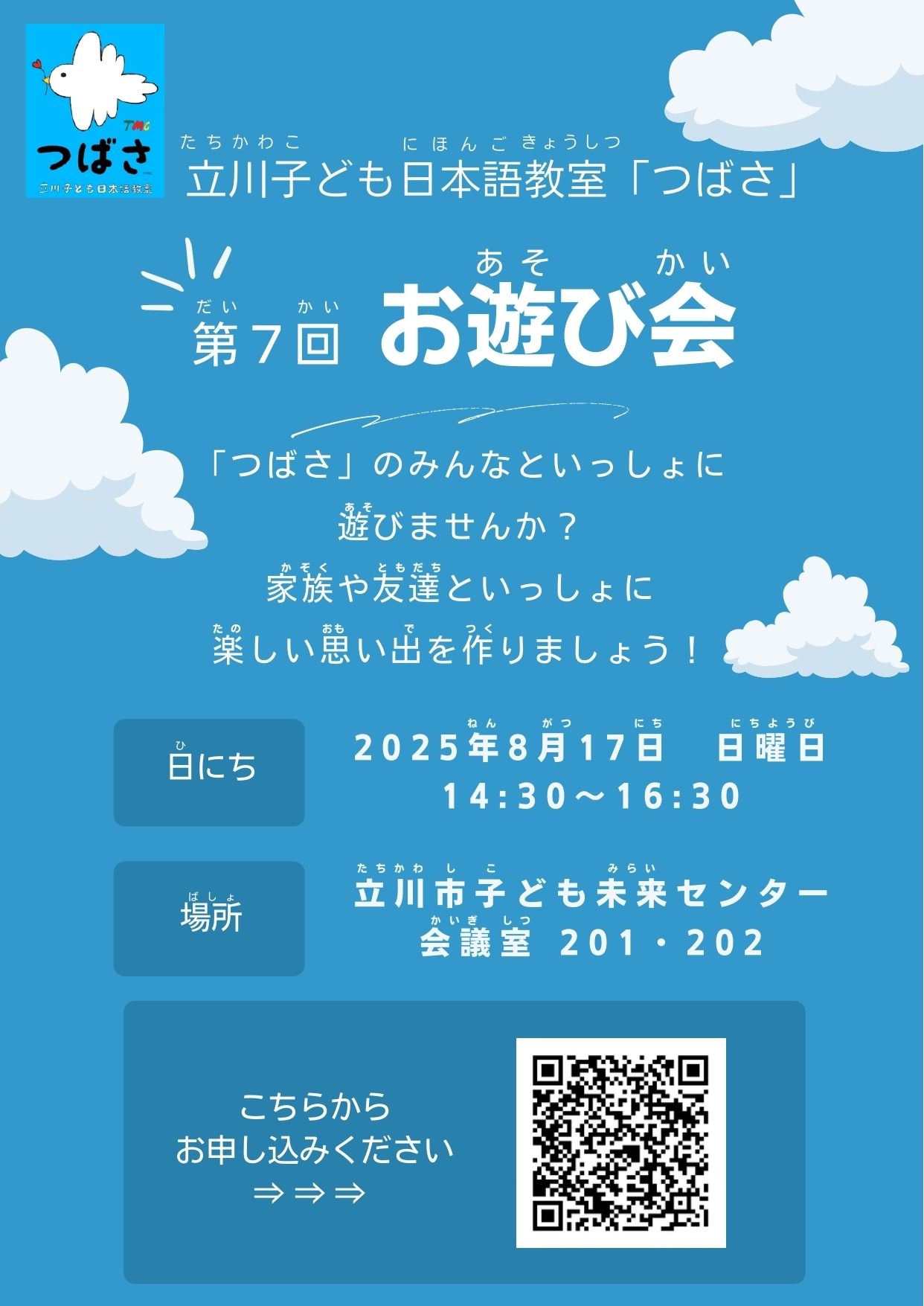 問い合わせ先:立川子ども日本語教室 akiko-shirai@tachikawa-mc.org