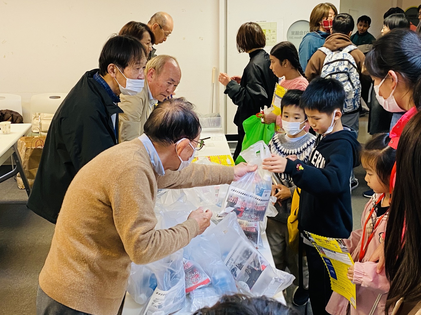 立川市より緊急避難用のビスケットと水が全員に配られました。