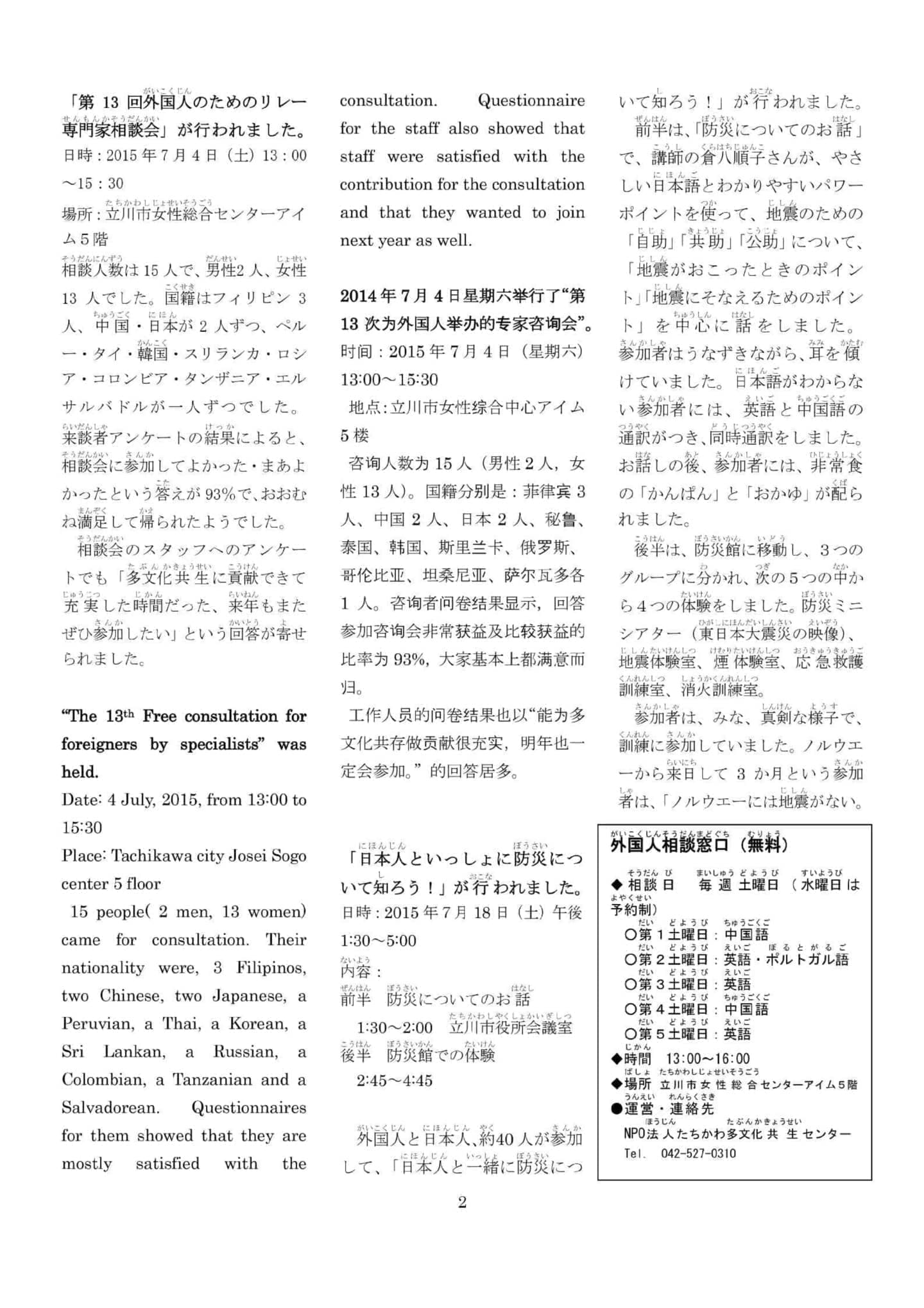 特定非営利活動法人 たちかわ多文化共生センター