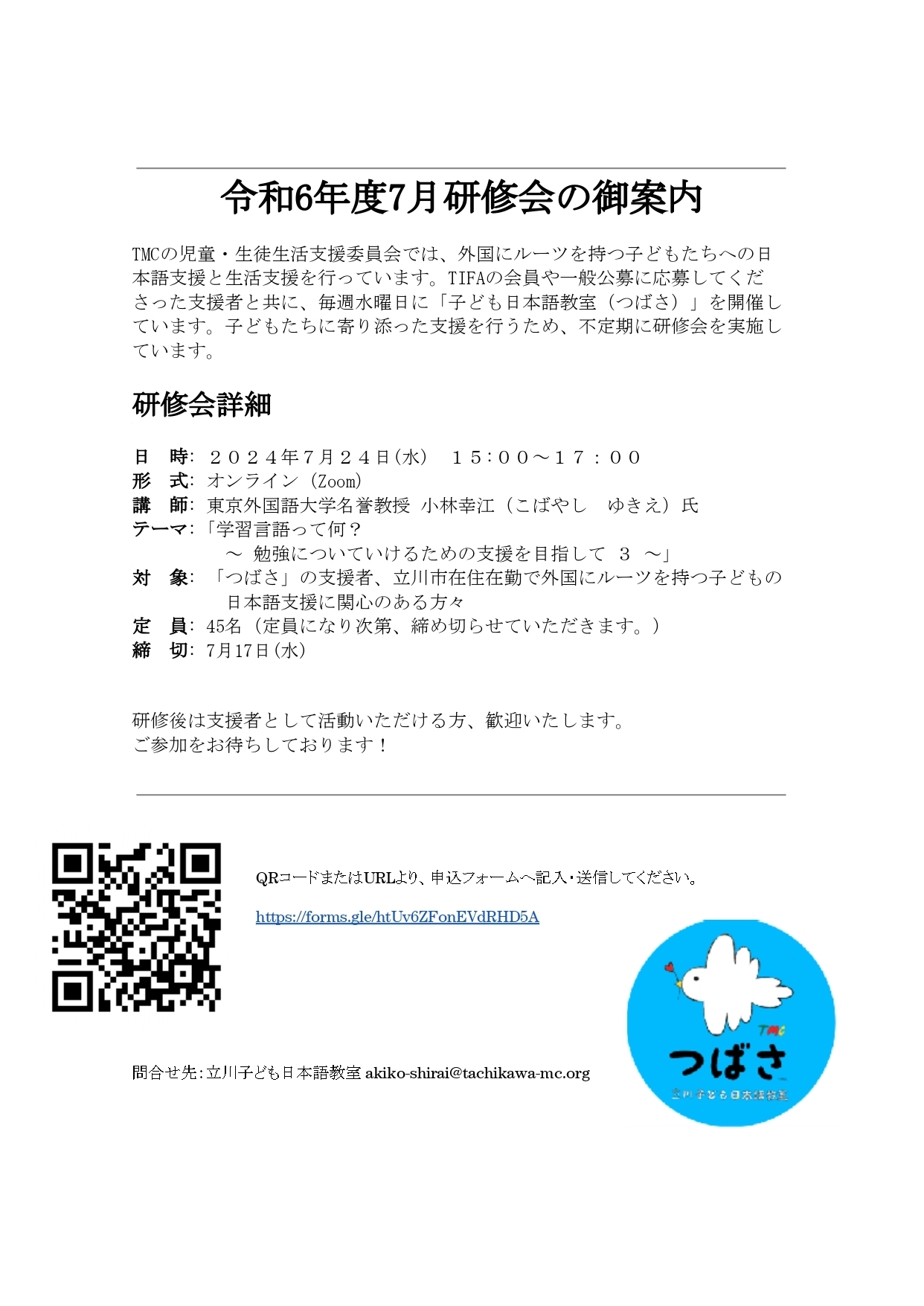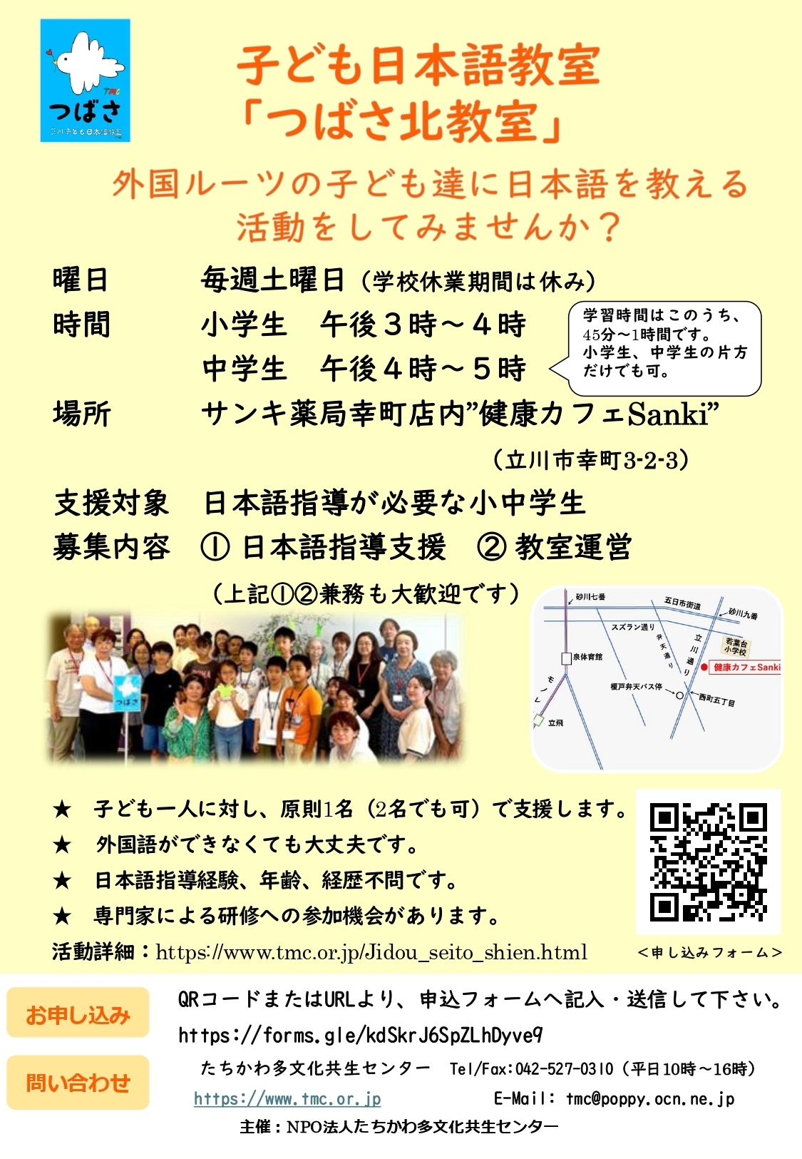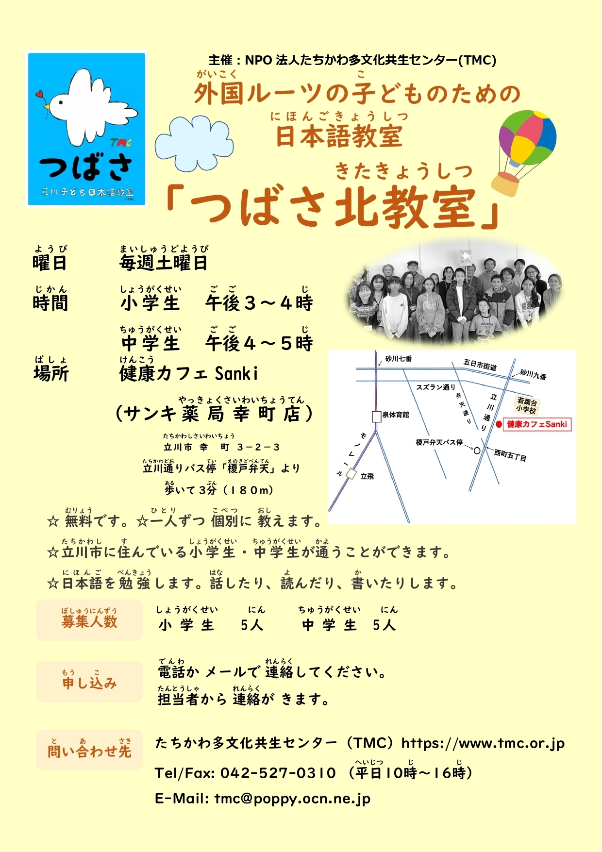 問い合わせ先:立川子ども日本語教室 akiko-shirai@tachikawa-mc.org